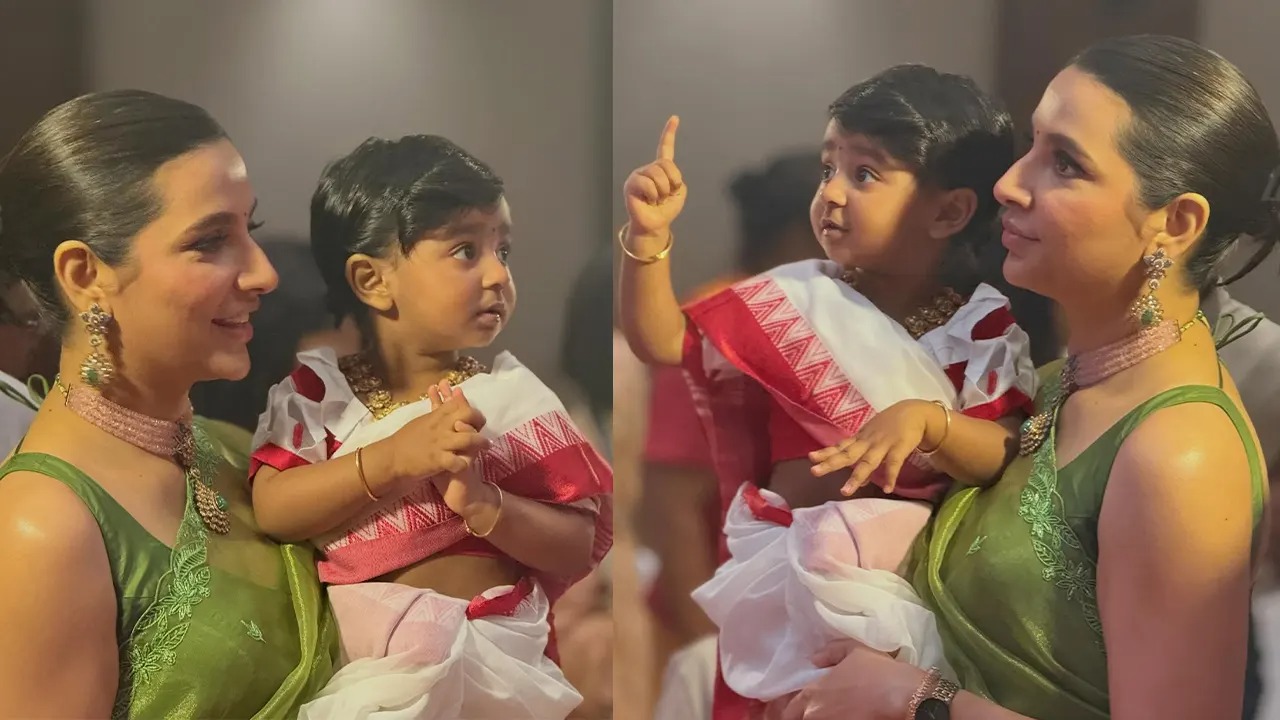 লালপেড়ে সাদা শাড়ি, পায়ে আলতা, গলায় দক্ষিণী হার—সরস্বতী পূজার সকালে ইয়ালিনিকে যেন ছোট্ট প্রতিমার মতোই দেখা গেছে। প্রতি বছরের মতো এবারও রাজ চক্রবর্তীর অফিসে ধুমধাম করে সরস্বতী পূজার আয়োজন করা হয়। তবে এ বছর দিনটি আরও বিশেষ, কারণ একদিকে মেয়ের হাতেখড়ি, অন্যদিকে একই দিনে মুক্তি পাচ্ছে রাজের নতুন সিনেমা ‘হোক কলোরব’।