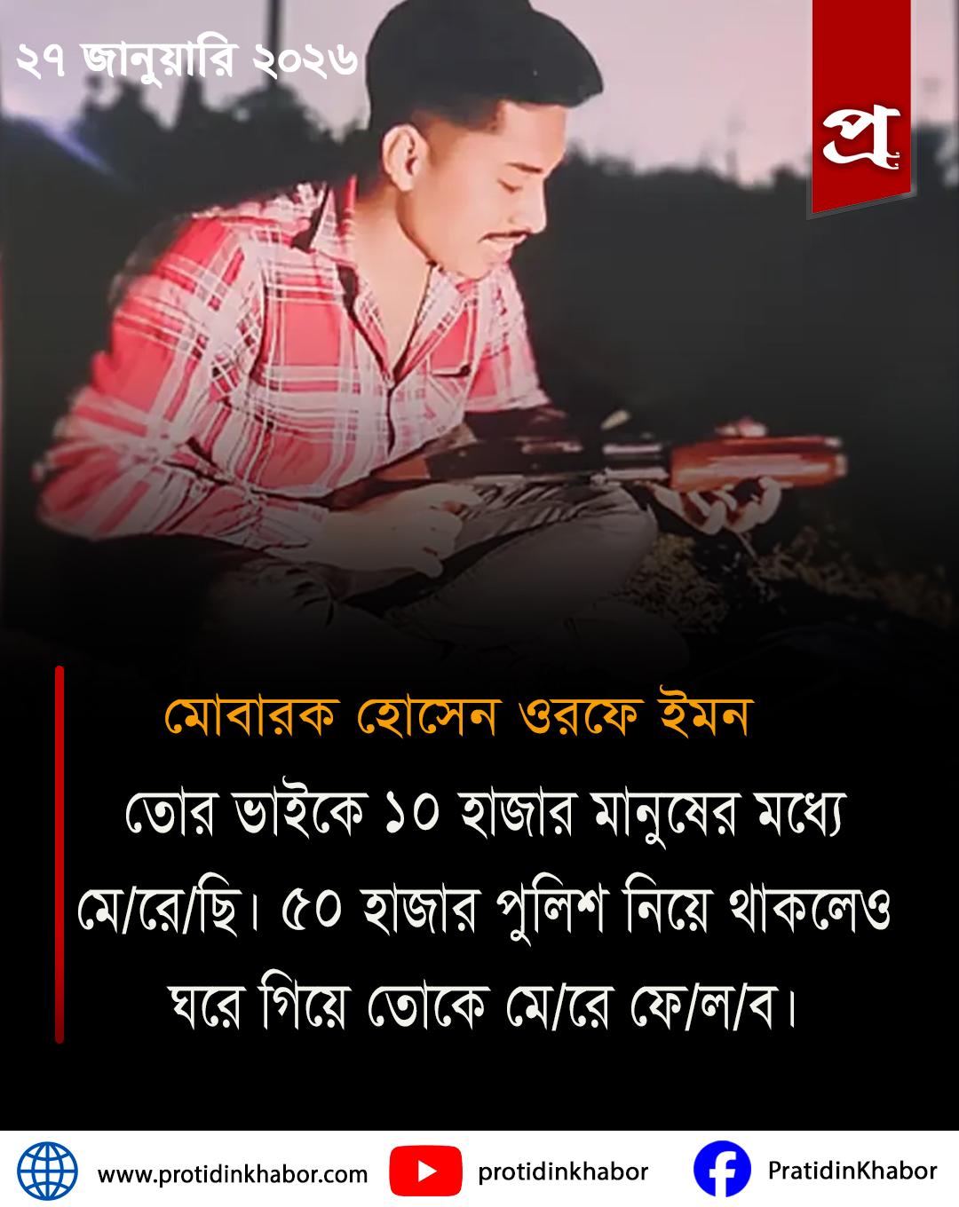 রোববার (২৫ জানুয়ারি) তার হোয়াটসঅ্যাপে হুমকির এই অডিও পাঠানো হয় বলে তিনি পুলিশকে জানিয়েছেন।