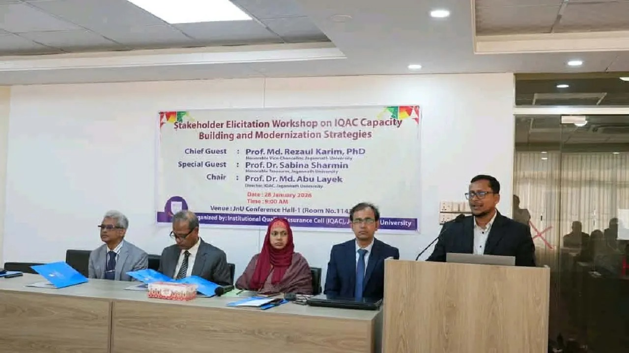 জগন্নাথ বিশ্ববিদ্যালয়ের (জবি) ইনস্টিটিউশনাল কোয়ালিটি অ্যাসুরেন্স সেলের (আইকিউএসি) উদ্যোগে স্টেকহোল্ডারদের জন্য ‘আইকিউএসি ক্যাপাসিটি বিল্ডিং অ্যান্ড মর্ডানাইজেশন স্ট্র্যাটেজিস’ শীর্ষক শিক্ষামূলক কর্মশালা অনুষ্ঠিত হয়েছে।