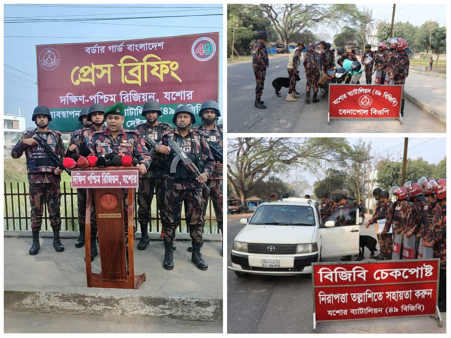 আসন্ন জাতীয় সংসদ নির্বাচনকে কেন্দ্র করে সীমান্ত পথে অবৈধ অস্ত্র, গোলাবারুদ এবং অনুপ্রবেশ রোধে কঠোর নিরাপত্তা ব্যবস্থা গ্রহণ করেছে বর্ডার গার্ড বাংলাদেশ (৪৯ বিজিবি)। আজ বেনাপোল-যশোর মহাসড়ক সংলগ্ন আমড়াখালি বিজিবি চেকপোষ্টে এক সাংবাদিক সন্মেলনে এ কথা জানানো হয়েছে।