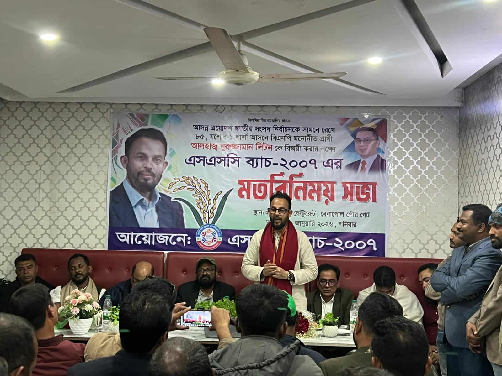 আলোচনাসভায় সংক্ষিপ্ত এক বক্তব্যে বিএনপি মনোনীত প্রার্থী আলহাজ্ব নুরুজ্জামান লিটন বলেন, “এসএসসি ব্যাচ–২০০৭ এর এই উদ্যোগ আমাকে নতুন করে অনুপ্রাণিত করেছে। দলমত নির্বিশেষে তরুণ সমাজ যদি ঐক্যবদ্ধভাবে মাঠে নামে, তাহলে জনগণের ভোটাধিকার ও গণতন্ত্র পুনরুদ্ধার অবশ্যই সম্ভব। বেনাপোলসহ যশোর–১ আসনের প্রতিটি গ্রামে মানুষের পাশে দাঁড়িয়ে আমরা একটি ন্যায়ভিত্তিক সমাজ গড়তে চাই।”