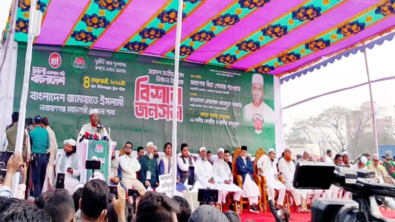 নারায়ণগঞ্জ মহানগর জামায়াতে ইসলামীর আমির মাওলানা মোহাম্মদ আব্দুল জব্বারের সভাপতিত্বে এ জনসভায় উপস্থিত ছিলেন, নারায়ণগঞ্জ জেলা জামায়াতে ইসলামীর আমির মঈনুল হক সরকার, নারায়ণগঞ্জ-১ (রূপগঞ্জ) আসনের জামায়াতে ইসলামীর প্রার্থী আনোয়ার হোসেন, নারায়ণগঞ্জ-২ (আড়াইহাজার) আসনের প্রার্থী অধ্যাপক ইলিয়াছ মোল্লা, নারায়ণগঞ্জ-৩ ( সোনারগাঁ-সিদ্ধিরগঞ্জ) আসনের প্রার্থী ডা. ইকবাল হোসেন ভূঁইয়া, নারায়ণগঞ্জ-৪ (ফতুল্লা) আসনের ১১ দলীয় জোটের এনসিপির প্রার্থী অ্যাডভোকেট আব্দুল্লাহ আল আমিন, নারায়ণগঞ্জ-৫(সদর-বন্দর) আসনের জোট প্রার্থী খেলাফত মজলিসের এবিএম সিরাজুল মামুন ও জোটের স্থানীয় নেতৃবৃন্দ।