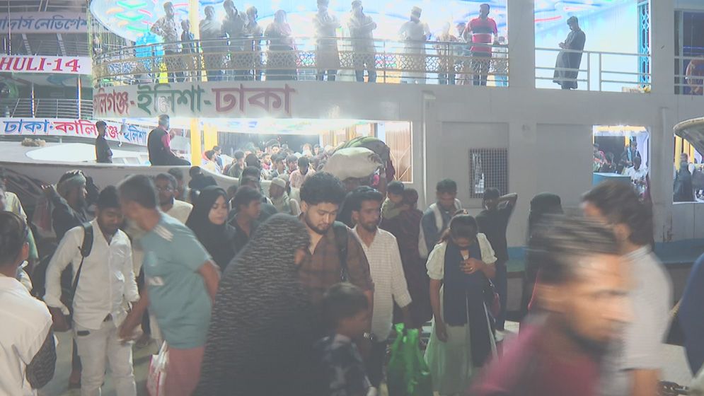 রোববার (২৯ মার্চ) ভোরে রাজধানীর সদরঘাট লঞ্চ টার্মিনালে ঢাকামুখী মানুষের ভিড় দেখা যায়।