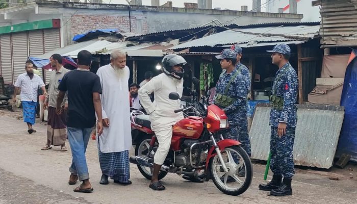 বরগুনার পাথরঘাটা পৌরসভার তালতলা বাজার গোলচত্বর এলাকায় যৌথবাহিনীর চেকপোস্ট পরিচালনা করেছে বাংলাদেশ নৌবাহিনী ও ট্রাফিক পুলিশ।