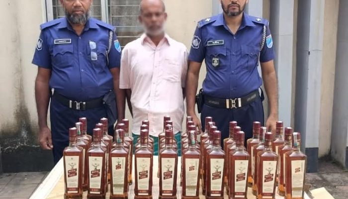 বিশেষ অভিযানে ৩৩ বোতল বিদেশি মদসহ মাদক ব্যবসায়ী গ্রেফতার, নরসিংদীতে চাঞ্চল্য