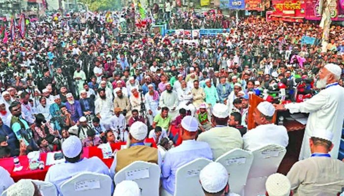 গতকাল জুলাই জাতীয় সনদ বাস্তবায়নের আদেশ জারি ও নভেম্বরে গণভোট আয়োজনসহ পাঁচ দফা দাবিতে আয়োজিত আট দলের সমাবেশে প্রধান অতিথির বক্তব্যে তিনি এ কথা বলেন। রাজধানীর পল্টনমোড়ে দুপুর ২টায় পবিত্র কোরআন তেলোয়াতের মাধ্যমে এ সমাবেশ শুরু হয়। ইসলামী আন্দোলনের আমির মুফতি সৈয়দ রেজাউল করীমের সভাপতিত্বে সমাবেশে বিশেষ অতিথি হিসেবে বক্তব্য দেন বাংলাদেশ খেলাফত মজলিসের আমির মাওলানা মামুনুল হক, খেলাফত মজলিসের আমির অধ্যক্ষ মাওলানা আবদুল বাসিত আজাদ, নেজামে ইসলাম পার্টির আমির অধ্যক্ষ মাওলানা সরওয়ার কামাল আজিজি, বাংলাদেশ খেলাফত আন্দোলনের আমির মাওলানা হাবিবুল্লাহ মিয়াজী, বাংলাদেশ ডেভেলপমেন্ট পার্টির সভাপতি অ্যাডভোকেট আনোয়ারুল হক চাঁন এবং জাতীয় গণতান্ত্রিক পার্টির রাশেদ প্রধান।