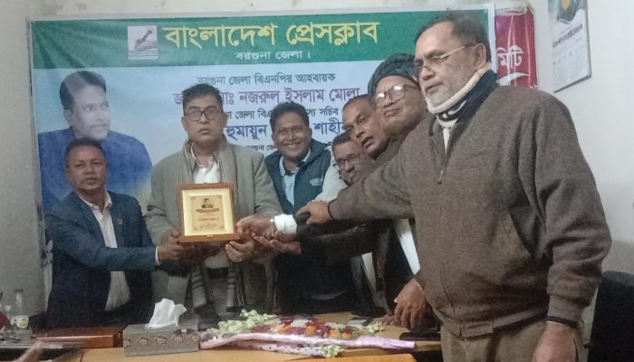 বরগুনায় বিএনপি মনোনীত প্রার্থীকে বাংলাদেশ প্রেসক্লাব ফুলেল সংবর্ধনা ও সম্মাননা স্মারক প্রদান করেন