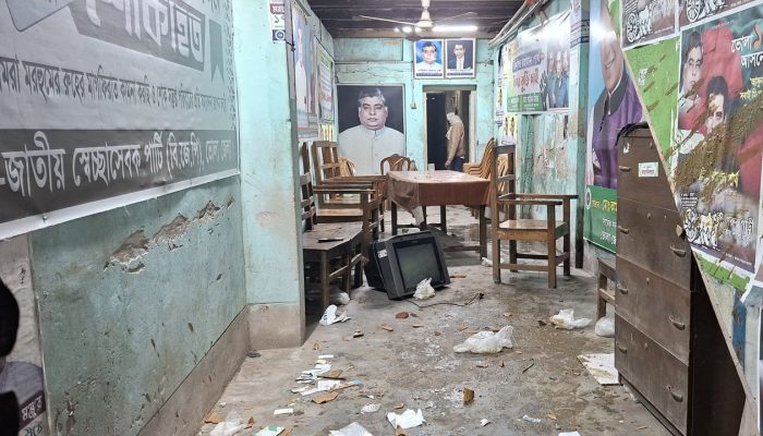 কর্মকর্তা মনিরুল ইসলাম জানান, ককটেল বিস্ফোরণের ঘটনা ঘটে এবং একদল দুর্বৃত্ত বিজেপি অফিস ভাঙচুরে চেষ্টা করে। এসময় পুলিশ পরিস্থিতি নিয়ন্ত্রণে ফাঁকা গুলি ছোড়ে।
