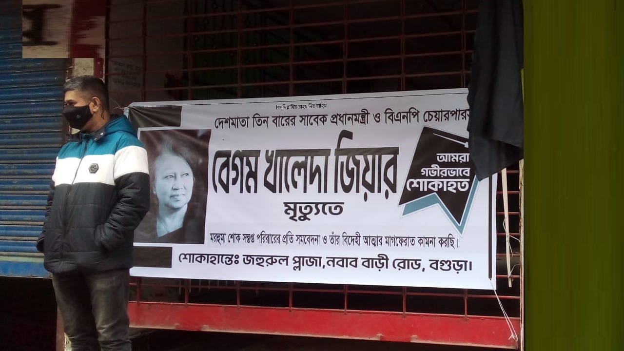 খালেদা জিয়ার মৃত্যুর খবরে বগুড়ায় বিএনপির সব কর্মসূচি স্থগিত করা হয়েছে। জেলা ও উপজেলা পর্যায়ে কালো পতাকা উত্তোলন, কোরআনখানি ও দোয়ার আয়োজন করা হয়েছে।