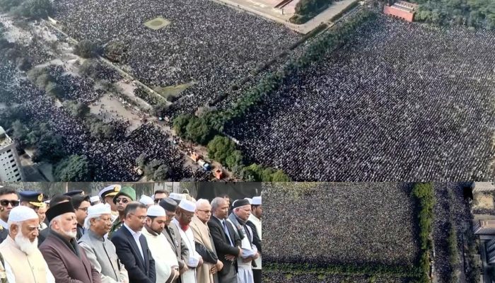 লাখ লাখ মানুষের অশ্রুসিক্ত ভালোবাসা আর গভীর শ্রদ্ধায় বিএনপি চেয়ারপার্সন ও তিনবারের সাবেক প্রধানমন্ত্রী দেশনেত্রী বেগম খালেদা জিয়ার জানাজা আজ বুধবার বেলা ৩টায় রাজধানীর মানিক মিয়া এভিনিউতে অনুষ্ঠিত হয়েছে। দেশের ইতিহাসের অন্যতম বৃহত্তম এই জানাজায় অংশ নিতে আসা মানুষের ভিড় সংসদ ভবন এলাকা ছাড়িয়ে কয়েক কিলোমিটার পর্যন্ত বিস্তৃত হয়ে এক মহাসমুদ্রে রূপ নেয়।