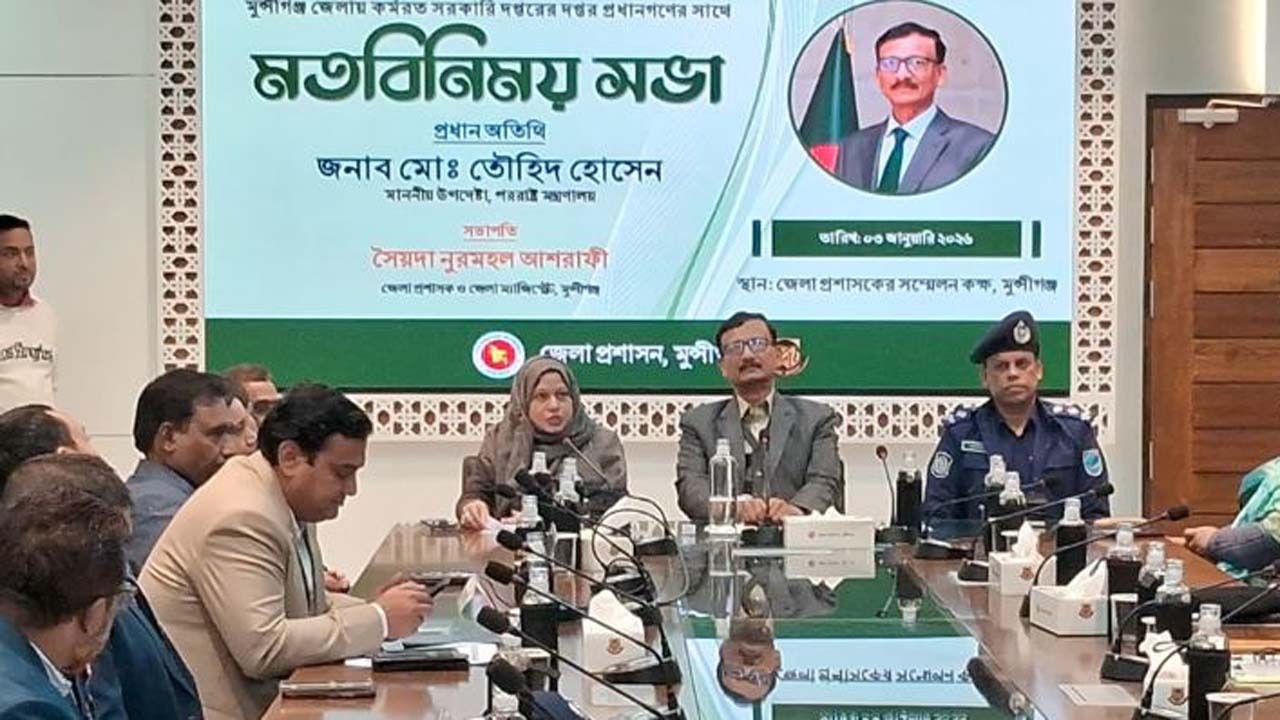 আজ শনিবার দুপুরে মুন্সীগঞ্জ জেলা প্রশাসকের সম্মেলনকক্ষে জেলায় কর্মরত বিভিন্ন সরকারি দফতরের প্রধানদের সাথে এক মতবিনিময় সভা শেষে সাংবাদিকদের তিনি এসব কথা বলেন।
