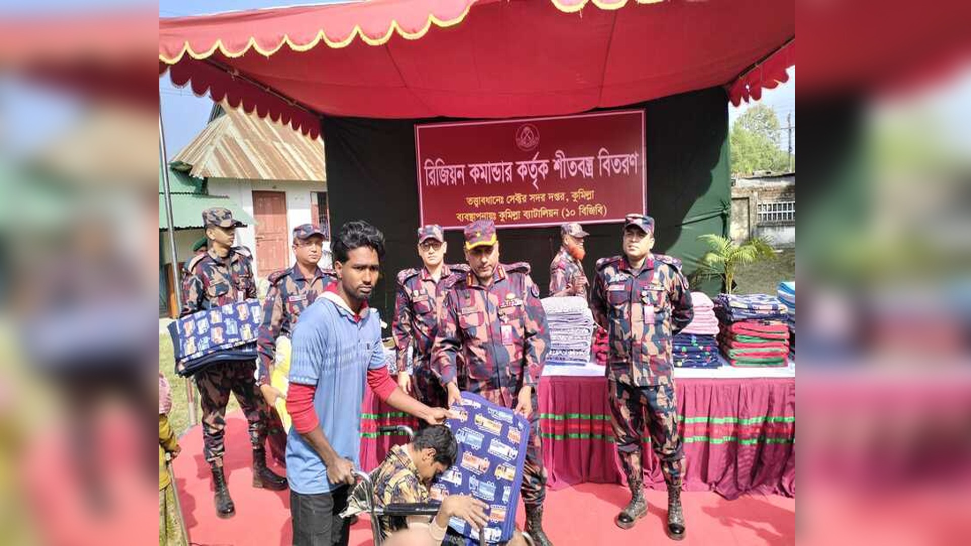 ১০ বিজিবি কুমিল্লা ব্যাটালিয়নের আয়োজনে অনুষ্ঠিত এ অনুষ্ঠানে ছয় শতাধিক দরিদ্র ও অসহায় মানুষের মাঝে শীতকালীন কম্বল বিতরণ করা হয়।