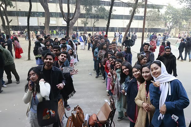 সকালে বিশ্ববিদ্যালয়ের ভাস্কর্য চত্বর, সামাজিক বিজ্ঞান অনুষদ, বিজ্ঞান অনুষদের মাঠসহ বিভিন্ন ভোটকেন্দ্রে শিক্ষার্থীদের ব্যাপক উপস্থিতি দেখা যায়। এ সময় ভোটারদের সুশৃঙ্খল দীর্ঘ সারি লক্ষ করা যায়। অনেক শিক্ষার্থী ভোট দেওয়ার পর ‘ভি’ চিহ্ন দেখিয়ে দল বেঁধে ছবি তোলেন।