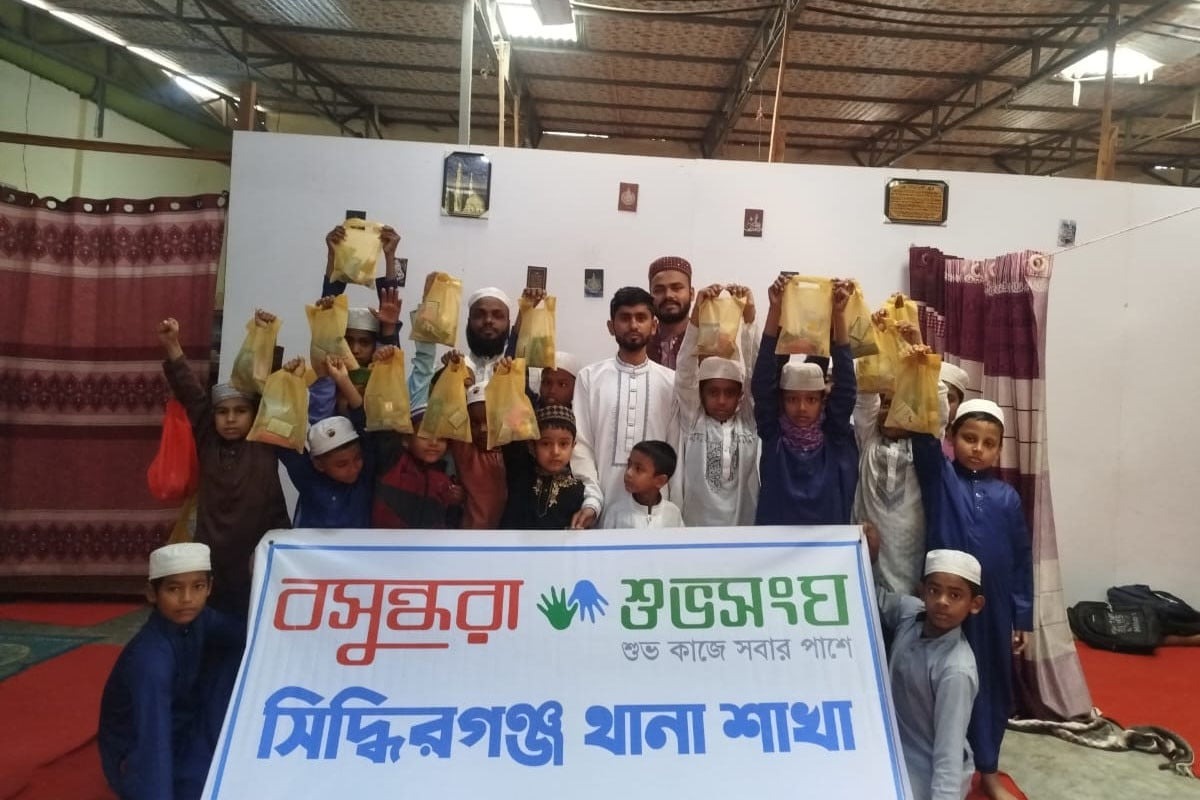 বসুন্ধরা শুভসংঘ ঢাকা মহানগর সমন্বয়ক আবদুল হান্নান মিলটনের দিকনির্দেশনা ও তত্ত্বাবধানে, বসুন্ধরা শুভসংঘ সিদ্ধিরগঞ্জ থানা শাখার সভাপতি খান শাহরিয়ার ফয়সালের নেতৃত্বে আয়োজনটিতে উপস্থিত ছিলেন বসুন্ধরা শুভসংঘ সিদ্ধিরগঞ্জ থানা শাখার সহ-সভাপতি এ এস আলিফ, সাধারণ সম্পাদক সামিদা আলম, কোষাধ্যক্ষ শাকিল তালুকদার, ধর্ম বিষয়ক সম্পাদক রিয়াদ, সমাজকল্যাণ বিষয়ক সম্পাদক রাইসুল, সদস্য তানভীর, সোহানাসহ সংগঠনের অন্যান্য সদস্যবৃন্দ।