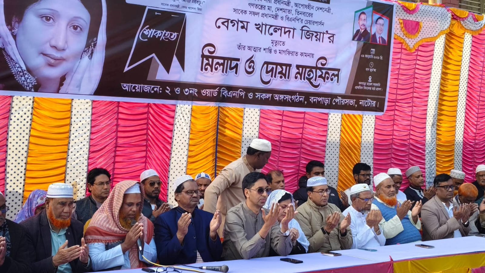 নাটোরের বনপাড়া পৌরসভার ২ ও ৩ নং ওয়ার্ড বিএনপি এবং অঙ্গ ও সহযোগী সংগঠনের উদ্যোগে সাবেক প্রধানমন্ত্রী ও বিএনপি চেয়ারপারসন দেশনেত্রী বেগম খালেদা জিয়ার রুহের মাগফেরাত কামনায় দোয়া ও মিলাদ মাহফিল অনুষ্ঠিত হয়েছে।